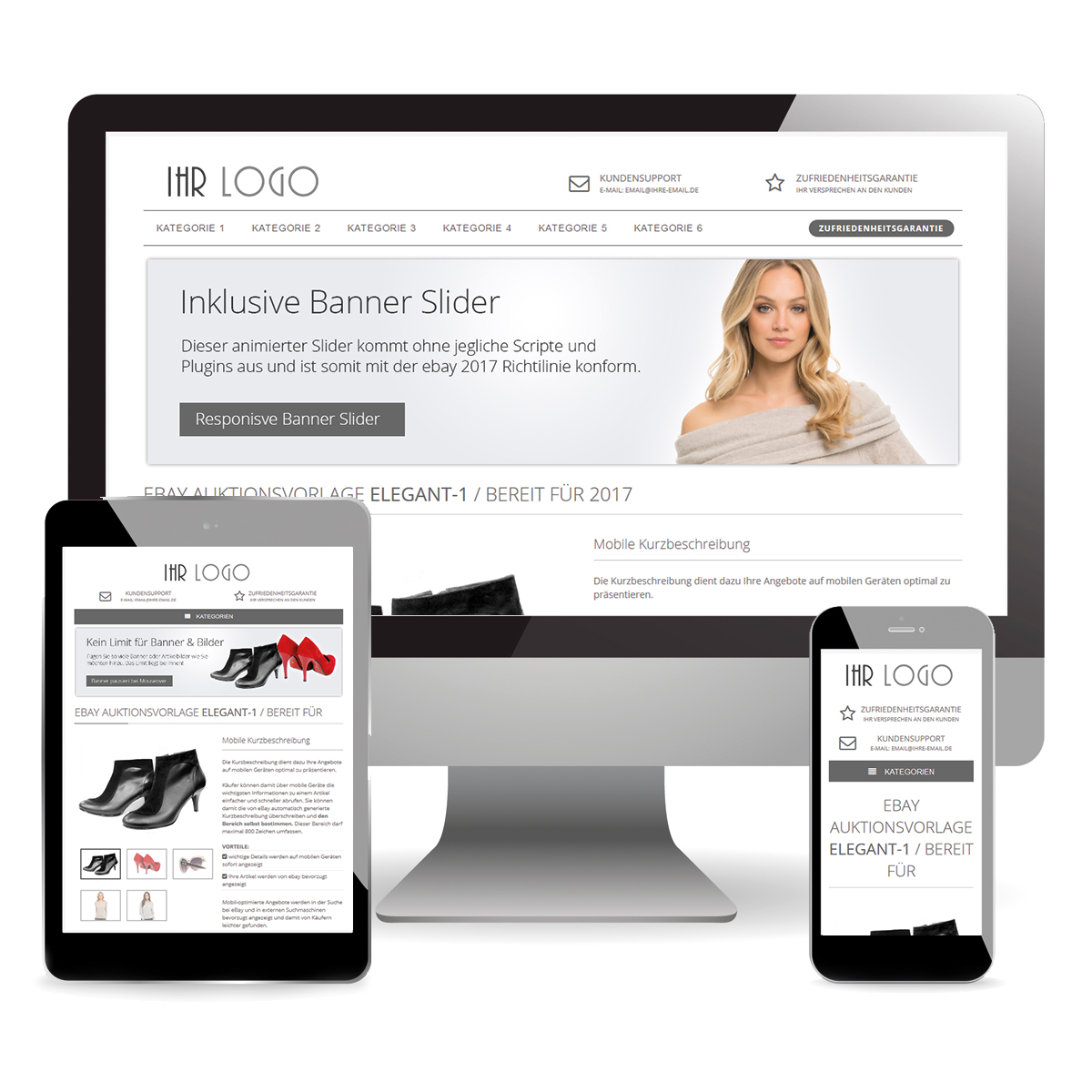 Alle unsere Vorlagen sind für mobile Endgeräte optimiert. Mobil-optimierte Angebote werden in der Suche bei eBay bevorzugt angezeigt.